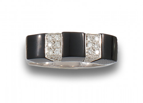 SORTIJA J. E. & C. CARRERA EN ORO BLANCO CON ÓNIX Y DIAMANT