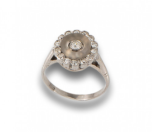 SORTIJA ROSETÓN DE DIAMANTES Y CRISTAL DE ROCA