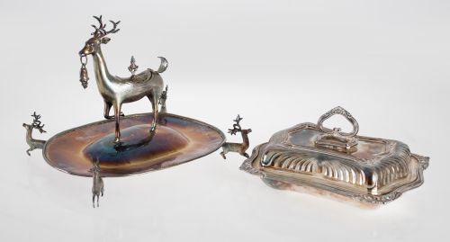Sahumador/centro de mesa de metal plateado, S. XX.