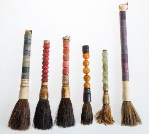 Con mangos de piedras en diferentes colores como verde, morado, ámbar o rojo. Presentan faltas.