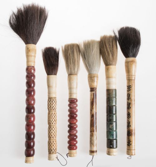 Tres con mangos de hueso con diferentes decoraciones, dos con piedras rojizas y uno verde. Presentan pequeñas faltas.