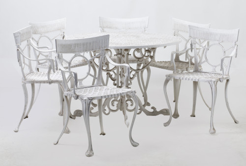 Seis sillas y mesa circular de jardín, España, med. S. XX