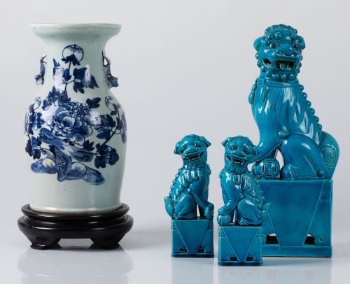 Tres leones de Fo de porcelana esmaltada en azul turquesa,