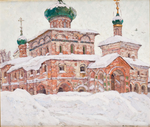 "Paisaje nevado con iglesia ortodoxa", 1968
