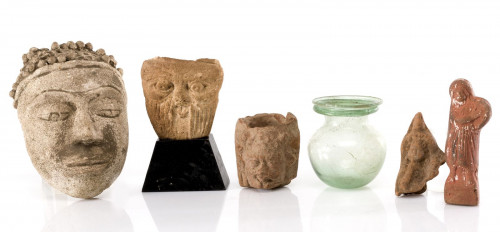 Pequeña ánfora romana s.I-II en cristal soplado color verde. Deterioros.