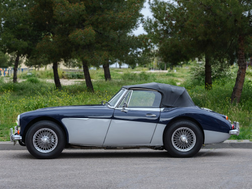 Marca: Austin Healey MKIII BJ8 Año: 1967 Procedencia nacional. 25.000 kms. (marca el cuentakms.). El estado del coche es original mantenido. Motor 3.000cc y 6cil. original, mantenido. Caja de cambios con overdrive. Repintado, bitono azul y gris, con pequeños desperfectos en pintura. Salida de escapes lateral izquierda, opcional en este modelo. Volante Moto-Lita, salpicadero de madera, con desperfectos alrededor tapa guantera. Tapicería original, envejecida por el uso y edad del vehículo. Capota vinílica, en estado de uso normal. También tiene cubrecapota. Existe algo de oxido en el suelo del lado del conductor bajo la alfombrilla, lado del copiloto normal. Los dos lados con película protectora. Fotos y videos a disposición de los interesados. Neumáticos uso medio, del año 2016, con pocos kms. Sin desperfectos apreciables. Facturas reglaje, carburadores, platinos nuevos, a disposición interesados. Con matrícula original de Madrid y matriculado histórico. ITV y seguro en vigor.