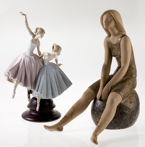 Grupo en porcelana de Lladró representando una pareja de bailarinas.