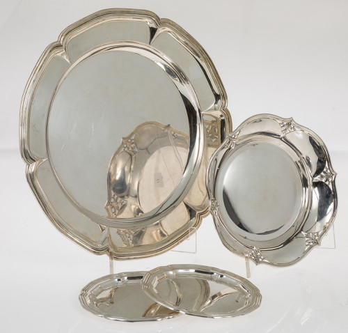Fuente circular en plata española contrastada, ley 916. Modelo ingletado Peso: 790 gr.