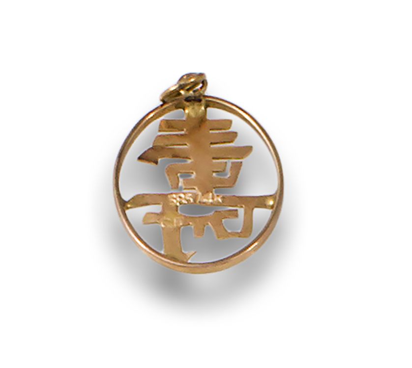 Colgante de oro amarillo de 14 kt. con kanjis japoneses. Peso: 0,79 gr. Peso: 0,79 gr.