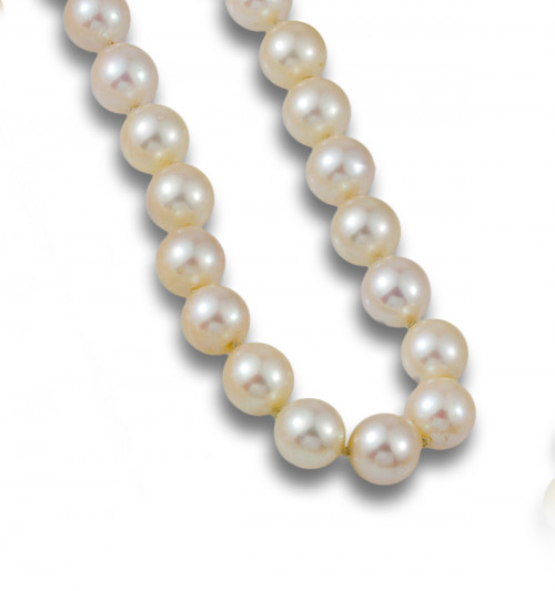 Collar largo de 83 perlas cultivadas de 9 mm. de diámetro. Cierre estriado de oro amarillo de 18 kt.