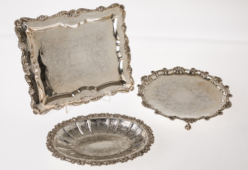 Centro oval en plata esapñola ley 916. Decoración floral incisa y greca de tornapuntas al borde. Peso: 500 gr.