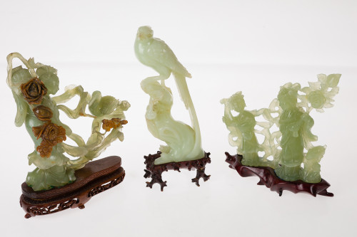 Lote de tres figuras de jade verde