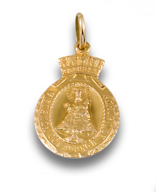 Medalla de oro amarillo de 18 kt. de la "Santina" Virgen de Covadonga. Peso: 3,20 gr. Peso: 3,20 gr.