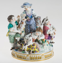 Tibor con tapa, de cerámica siguiendo modelos chinos, Fundación de Gremios, España, S. XX