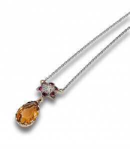 CADENA Y COLGANTE, ESTILO ANTIGUO, DE TOPACIO, RUBÍES SINTÉTICOS