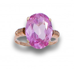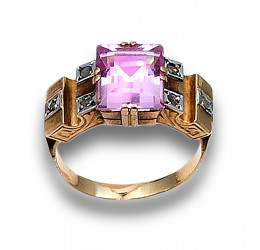 SORTIJA , ESTILO CHEVALIER, AÑOS 40, DE ORO AMARILLO Y ROSA DE FRANCIA