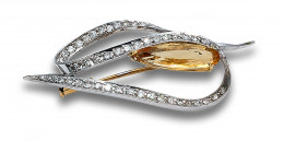 BROCHE DE TOPACIO, DIAMANTES Y ORO