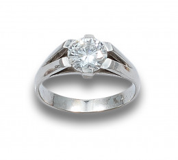 SORTIJA SOLITARIO DE DIAMANTE, TALLA BRILLANTE DE 1.43 CT., COLOR G, PUREZA VS1