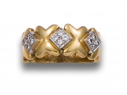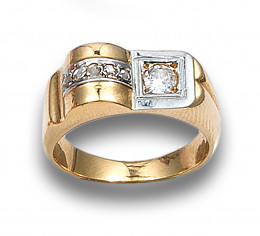 SORTIJA, AÑOS 80, EN ORO AMARILLO Y BLANCO Y DIAMANTES
