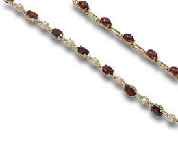 DOS PULSERAS DE ORO, GRANATES Y PERLAS