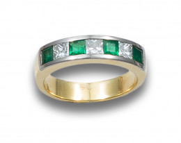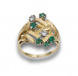 SORTIJA EN ORO, ESMERALDAS Y DIAMANTES