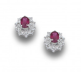 PENDIENTES ROSETONES DE RUBÍES, DIAMANTES Y ORO BLANCO