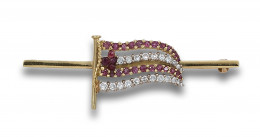 ALFILER DE ORO, RUBÍES Y DIAMANTES EN FORMA DE BANDERA