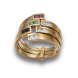 SORTIJA, AÑOS 80, DE ORO AMARILLO, CIRCONITAS Y PIEDRAS DE COLOR