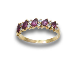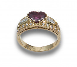 SORTIJA RUBÍ CORAZÓN Y DIAMANTES, EN ORO AMARILLO