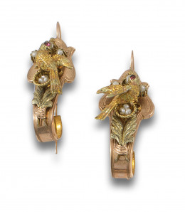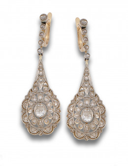 PENDIENTES BELLE ÉPOQUE EN ORO, PLATINO Y DIAMANTES
