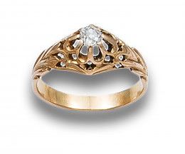 SORTIJA, ESTILO ANTIGUO, DE DIAMANTES Y ORO
