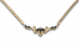 GARGANTILLA, AÑOS 80, DE ORO AMARILLO, DIAMANTES Y ZAFIROS