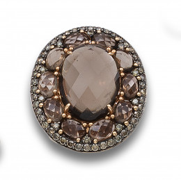 GRAN SORTIJA DE TOPACIOS FUMÉ, DIAMANTES BROWN Y ORO AMRILLO
