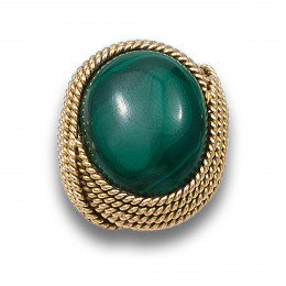 GRAN SORTIJA, AÑOS 70, DE MALAQUITA, Y ORO AMARILLO