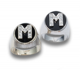 LOTE DE DOS SELLOS DE ORO BLANCO, ÓNIX Y DIAMANTES