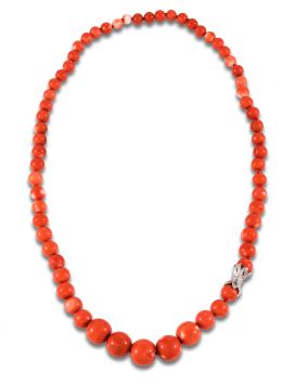 COLLAR DE CORAL, CIERRE DE ORO BLANCO CON DIAMANTES