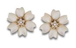 PENDIENTES FLORES DE MADREPERLA Y DIAMANTES, EN ORO AMARILLO