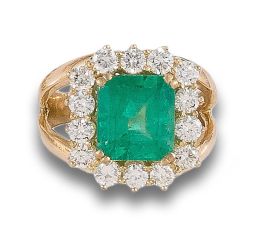 SORTIJA EN ORO CON ESMERALDA Y DIAMANES