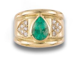 ANCHA SORTIJA EN ORO CON ESMERALDA Y DIAMANTES