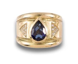 ANCHA SORTIJA EN ORO CON ZAFIRO Y DIAMANTES