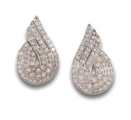 PENDIENTES, ESTILO AÑOS 50, DE DIAMANTES, EN PLATINO