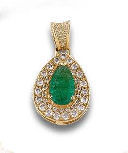 COLGANTE DE ESMERALDA Y DIAMANTES, EN ORO AMARILLO
