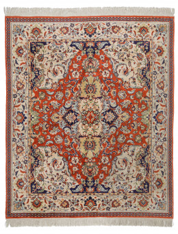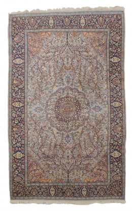 Alfombra oriental Indo Kirmad, anudada a mano en seda y lana