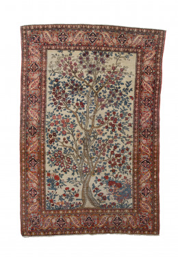 Antigua alfombra Isfahan de lana anudada a mano con motivo del árbol de la vida, c. 1880