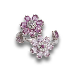 SORTIJA VASARI TÚ Y YO DE FLORES DE ZAFIROS Y DIAMANTES, EN ORO BLANCO