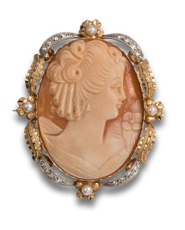 COLGANTE - BROCHE CAMAFEO, DE ÁGATA, CIRCONITAS Y PERLITAS