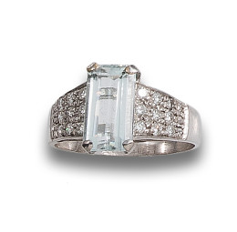 SORTIJA DE AGUAMARINA Y DIAMANTES, EN ORO BLANCOQ