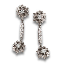 PENDIENTES ROSETAS DE DIAMANTES, EN ORO BLANCO