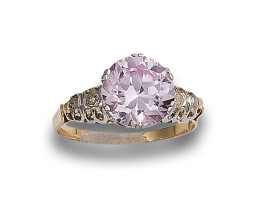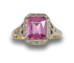 SORTIJA, ESTILO ANTIGIO DE ROSA DE FRANCIA, EN ORO AMARILLO Y VISTAS EN PLATINO