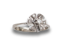 SORTIJA, ESTILO ANTIGUO, ROSETA DE DIAMANTES, EN ORO BLANCO